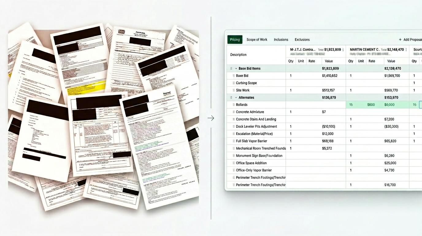 Review every subcontractor proposal in minutes, not hours.